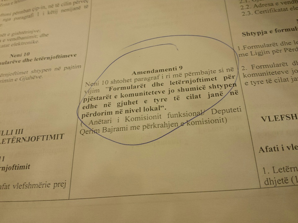 ![]() Izglasan Amandman poslanika Ćerima Bajramija na Zakon o ličnoj karti SKUPŠTINA KOSOVA IZGLASALA: UBUDUĆE LIČNE KARTE I NA BOSANSKOM JEZIKU!