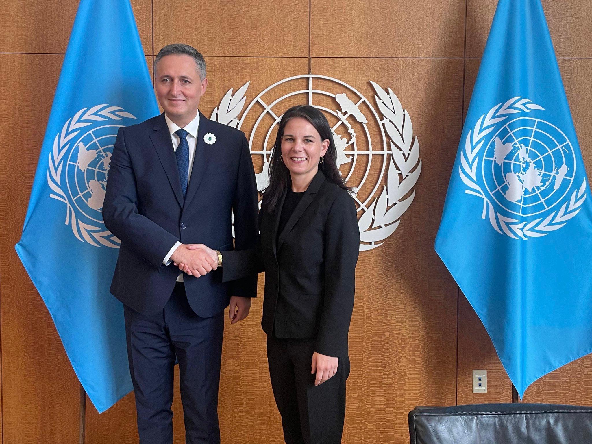 ![]() Foto: Predsjedništvo BiH UN NEW YORK: BEĆIROVIĆ RAZGOVARAO S PREDSJEDNICOM GENERALNE SKUPŠTINE UN-A ANNALENOM BAERBOCK Član Predsjedništva BiH dr. Denis Bećirović razgovarao je u sjedištu Ujedinjenih nacija (UN) u New Yorku s predsjednicom Generalne skupštine UN-a Annalenom Baerbock. Sastanku je prisustvovao šef stalne misije Bosne i Hercegovine pri UN-u, ambasador Zlatko Lagumdžija. Dr. Bećirović je informirao predsjednicu Generalne skupštine UN-a o aktuelnoj političkoj situaciji u Bosni i Hercegovini i regiji. Tom prilikom je rekao da destruktivno antidejtonsko djelovanje još nije zaustavljeno. U tom smislu naglasio je važnost uloge visokog predstavnika u očuvanju mira i stabilnosti. Bilo kakvi prijedlozi koji bi slabili dejtonsku poziciju i ulogu OHR-a su apsolutno neprihvatljivi za Bosnu i Hercegovinu. Dejtonski mirovni sporazum nije švedski sto s kojeg se može uzimati samo ono što neko želi. To je cjelovit mirovni i međunarodni sporazum, koji se mora dosljedno provoditi. Član Predsjedništva BiH se zahvalio Generalnoj skupštini UN-a na usvajanju Rezolucije o Međunarodnom danu sjećanja i obilježavanja genocida u Srebrenici koju je Generalna skupština UN-a usvojila u maju 2024. godine. Dr. Bećirović je ukazao na historijski značaj postavljanja spomenika Cvijet Srebrenice. Spomenici o genocidima u Bosni i Hercegovini i Ruandi su trajna opomena čovječanstvu da u budućnosti puno snažnije radi na prevenciji novih zločina i genocida. Spomenik Cvijet Srebrenice je u funkciji širenja istine i edukacije budućih naraštaja o zločinačkim politikama i ideologijama koji dovode do genocida. Dr. Bećirović je zahvalio predsjednici Baerbock na njenoj snažnoj ulozi u širenju istine o počinjenom genocidu u i oko Srebrenice. Podsjetio je da Bosna i Hercegovina veoma cijeni njenu ulogu i kao ministrice vanjskih poslova Savezne Republike Njemačke, jer je svojim konkretnim i principijelnim djelovanjem pomogla u širenju istine ali i u zaštiti nezavisnosti, suvereniteta i teritorijalnog integriteta Bosne i Hercegovine. Tokom sastanka je ocijenjeno i da Bosna i Hercegovina aktivno učestvuje u radu Generalne skupštine UN-a, te da u globalnim i regionalnim procesima doprinosi zaštiti univerzalnih vrijednosti, multilateralizma, ljudskih prava i međunarodnog prava. Također, napominjemo da je ovo šesti sastanak člana Predsjedništva BiH u sjedištu UN-a s predsjednicima Generalne skupštine UN-a. Osim susreta s predsjednicima Generalne skupštine UN-a, Bećirović se pet puta sastao s generalnim sekretarom UN-a. |
