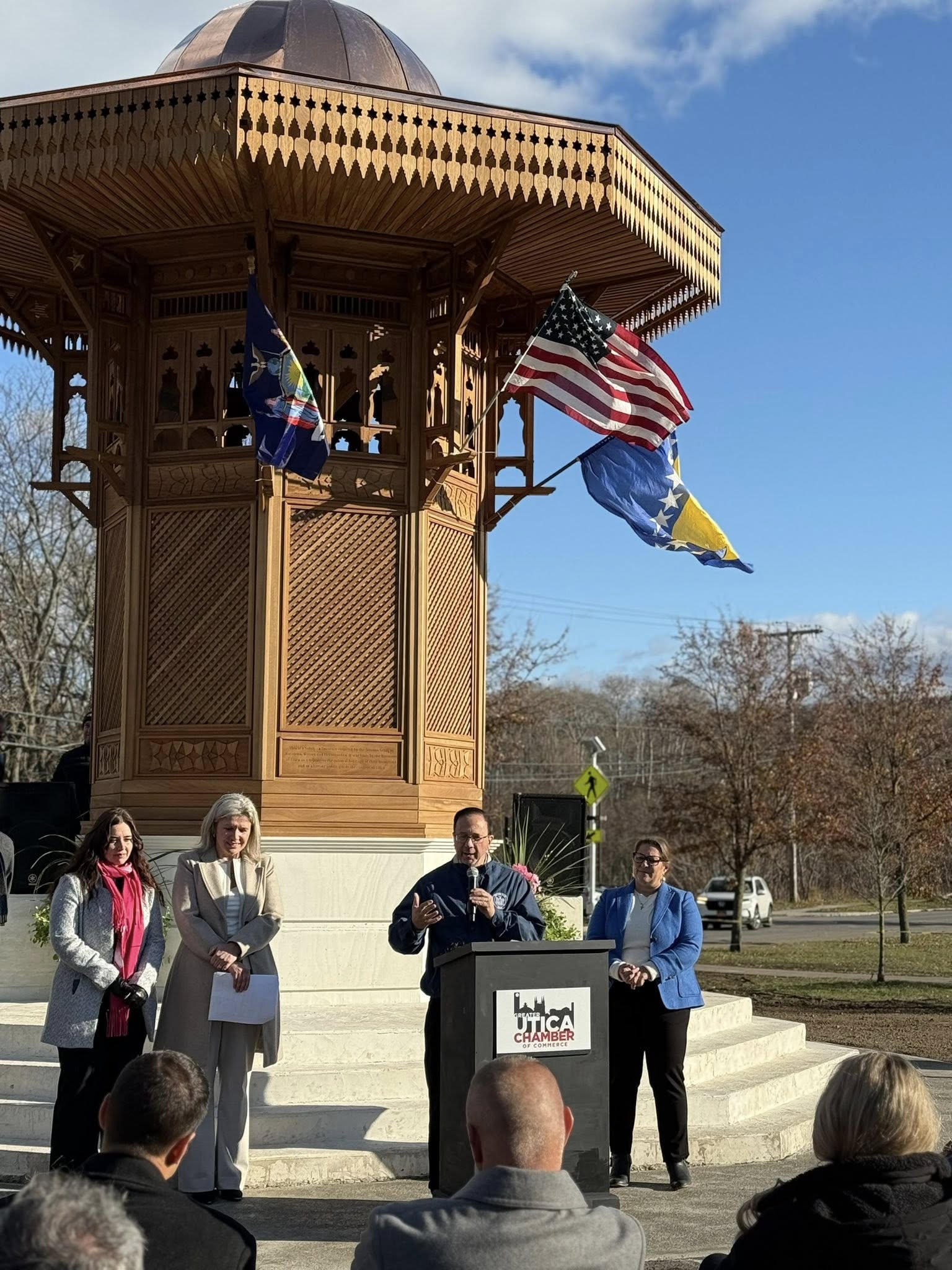 ![]() SEBILJ UKRASIO AMERIČKI GRAD UTICU U povodu 25. novembra - Dan državnosti Bosne i Hercegovine u američkom gradu Utica svečano je otvoren Sebilj koji sada krasi ovaj dio Sjedinjenih Američkih Država. Na svečanosti su prisustvovali Senator države New York Joseph A. Griffo, zastupnica u Gradskom vijeću Utica Marianne Buttenschon, koji su javno uputili riječi hvale… Sebilj je sagrađen na uglu Culver avenije i Albany ulice. ![]() Senator države New York Joseph A. Griffon a FB profilu je naglasio: - Bilo mi je zadovoljstvo pridružiti se Bosansko-američkoj zajednici na ceremoniji otkrivanja Sebilja, tradicionalne bosanske fontane, u Utici. Fontana je inspirisana onom u Sarajevu, u Bosni i Hercegovini, i slavi i odaje počast bosanskoj kulturi u zajednici i regiji, istakao je Senator Griffon. ![]() Zastupnica Marianne Buttenschon također se oglasila: - Svečano otvorenje izvanrednog drvenog i bakrenog Sebilja u Utici, koje je ovog vikenda organizovala BACA, služi kao još jedan primjer posvećenosti bosansko-američke zajednice unapređenju doline Mohawk. Hvala BACA-i, brojnim volonterima i sponzorima što su ovaj spomenik učinili stvarnošću, naglasila je zastupnica Buttenschon. ![]() - Danas je san postao stvarnost. Stojim ispred nečega što sam nekada samo zamišljala - našeg vlastitog Sebilja u srcu Utice. Ono što je nekada bila samo vizija sada stoji visoko iza mene, puno značenja, ljepote i ljubavi prema našoj domovini i našoj zajednici. Ovaj Sebilj ne pripada jednoj osobi, već svima nama. Svaka cigla, svaki komad drveta, svaki detalj nosi priču o našem jedinstvu, našoj kulturi i našem zajedničkom ponosu. Danas smo pokazali šta se dešava kada zajednica stoji zajedno. Pokazali smo šta ljubav, naporan rad i povezanost mogu izgraditi, rekla je Hanka Grabovica, predsjednica BACA. ![]() Na široko je poznato da je Sebilj simbol Baščaršije, Sarajeva - Glavnog Grada države Bosne i Hercegovine, i da je dio bogate bosanske baštine. Sebilj u Utici su sagradili preživjele žrtve višedržavne agresije i udruženog zločinačkog poduhvata na Republiku Bosnu i Hercegovinu i genocida nad Bošnjacima. Svi oni su se nastanili u Utica nakon završetka agresije, potpisivanja Daytonskog sporazuma (1995). Tako da su u znaku zahvalnosti gradu i građanima ovog dijela New York State sagradili ovaj prekrasni Sebilj, da nakon teške i planetarne tragedije kojoj su izloženi od strane srpsko-crnogorskog i hrvatskog agresora ponude lijepu imigrantsku priču i dio bogatog kulturnog naslijeđa ostave u amanet generacijama koje dolaze da znaju ko su, šta su, odakle su… U programu su učestvovali članovi folklornog društva obučeni u tradicionalnim bosanskim nošnjama. Ovaj lijepi Sebilj sagradili su članovi BACA sa članovima bošnjačke zajednice i prijateljima. Samo da naglasimo, već nekoliko godina Sebilj krasi St. Louis. |