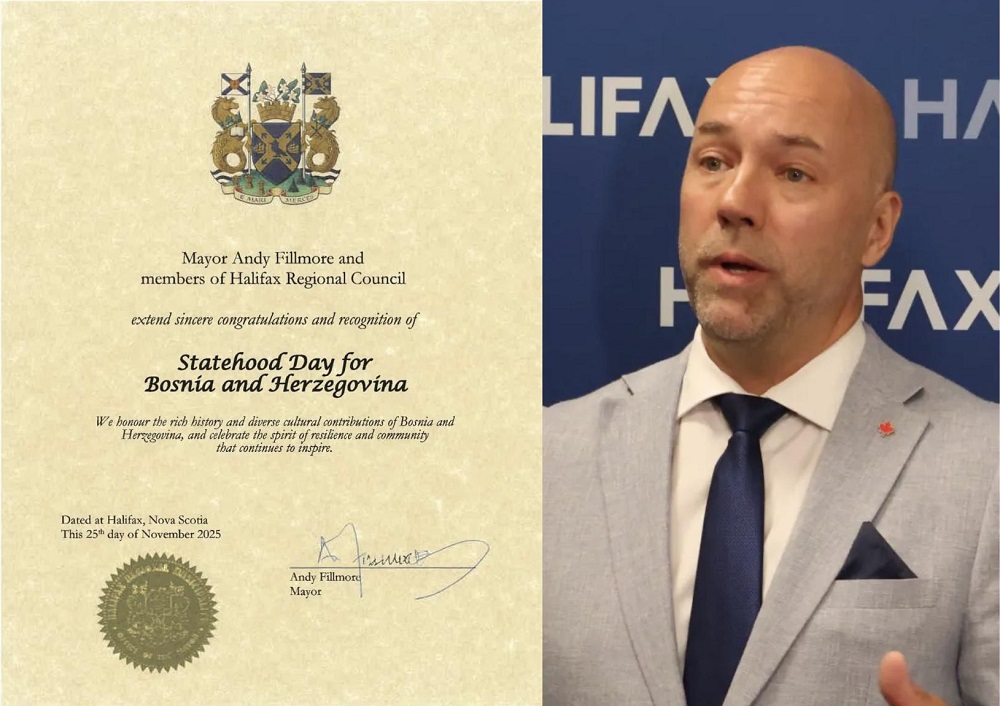 ZNAČAJNA PORUKA GRADONAČELNIKA HALIFAXA, ANDY FILLMORE, POVODOM DANA DRŽAVNOSTI BOSNE I HERCEGOVINE!