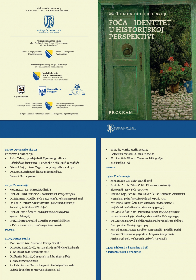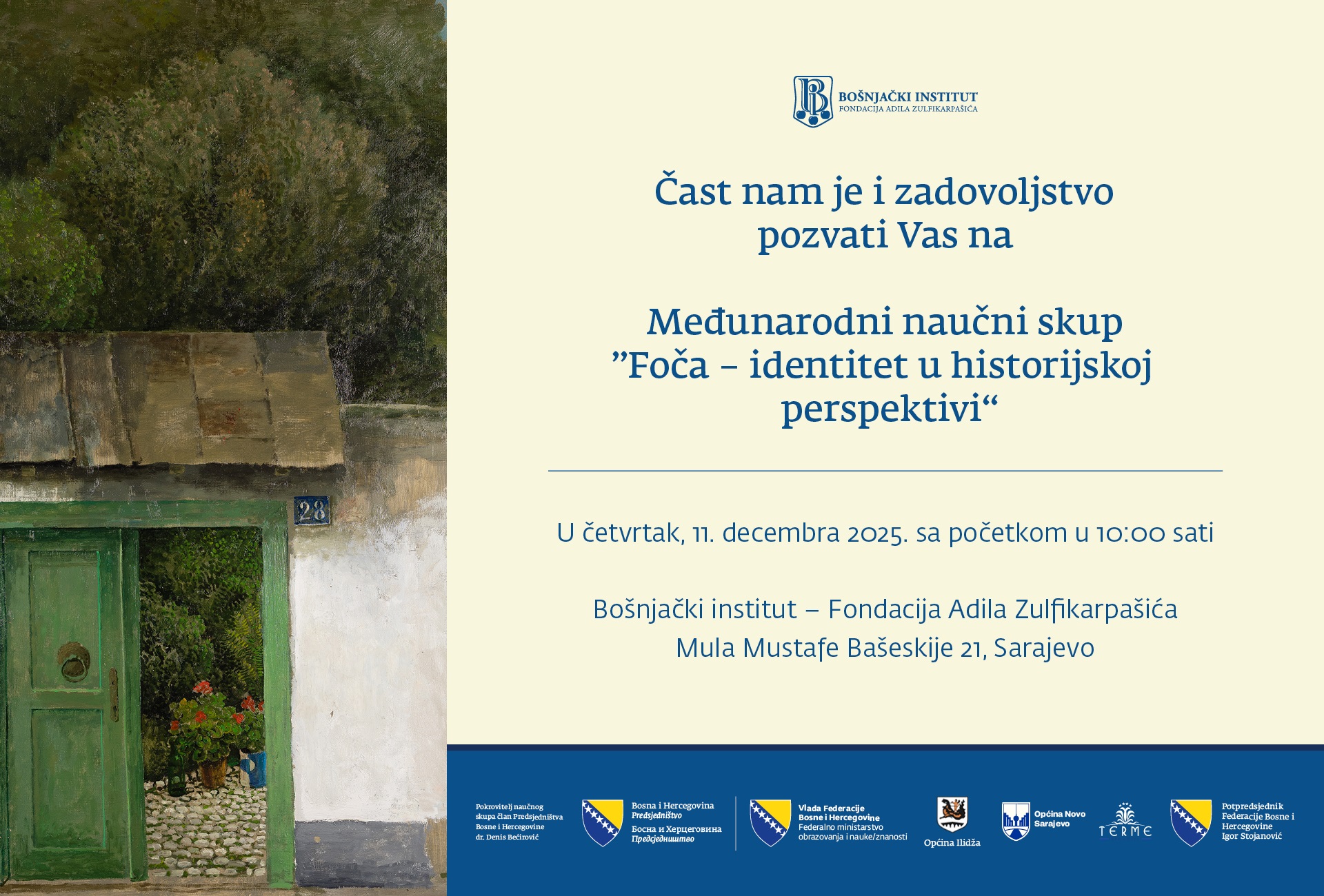 ![]() Četvrtak, 11.12.2025, Bošnjački institut – Fondacija Adila Zulfikarpašića MEĐUNARODNI NAUČNI SKUP FOČA – IDENTITET U HISTORIJSKOJ PERSPEKTIVI Bošnjački institut – Fondacija Adila Zulfikarpašića u Sarajevu organizira Međunarodni skup pod nazivom Foča – Identitet u historijskoj perspektivi u četvrtak, 11. decembra 2025. godine sa početkom u 10:00 sati. Tematski okvir naučnog skupa, i istoimenog zbornika radova na bosanskom i engleskom jeziku koji su već izašli iz štampe, obuhvata različita pitanja i uže teme iz historije Foče od srednjeg vijeka do savremenog doba. U zborniku su zastupljeni, a na naučnom skupu će biti predstavljeni naučni prilozi koji tretiraju prošlost Foče i njenog stanovništva s osvrtom na identitetska pitanja u svim njihovim aspektima: vjerskom, etničkom, nacionalnom, kulturnom i drugim. Poseban naglasak je na historijskim procesima i događajima koji su tokom 20. stoljeća u identitet grada i čitavog fočanskog kraja utiskivali žig stradalništva u cikličnim masovnim zločinima počinjenim tokom dva svjetska rata i posljednje agresije na Bosnu i Hercegovinu 1992-1995. Učešće na skupu će uzeti 16 eminentnih naučnika iz oblasti historije i drugih naučnih disciplina. S obzirom na značaj skupa kojim će se nastojati doprinijeti razumijevanju identiteta Foče i Fočaka, onakvog kakav je nastajao i postojao do kraja 20. stoljeća, pozivamo Vas da se odazovete pozivu i medijski popratite ovaj naučni i kulturni događaj. U prilogu dostavljamo pozivnicu i program naučnog skupa. Učesnici i članovi organizacionog odbora će biti dostupni za izjave od 9:40 do 10:00 sati, piše u pozivu Bošnjačkog instituta. U nastavku prilažemo izvod iz Uvoda Zbornika kojeg potpisuje urednik dr. Mesud Šadinlija. ... S obzirom na to da je osnova našeg tematskog okvira bila historijska perspektiva identiteta Foče i Fočaka, ovom prilikom nismo otvorili prostor za kolege koje se bave proučavanjem starog vijeka, te smo za početni referentni period odredili kasni srednji vijek, u kojem se Foča prvi put javlja u historijskim izvorima. Spremnost doajena bosanskohercegovačke mediavelistike prof. dr. Esada Kurtovića da uzme učešće i dâ svoj prilog za zbornik radova nije mogla imati drugačiji ishod osim ozbiljnog naučnog doprinosa. Njegov rad “Foča u kasnom srednjem vijeku” donosi nove spoznaje, između ostalog i novi najraniji spomen Foče u izvorima, otvara prostor za tačnije interpretacije već poznatih činjenica i skreće pažnju na neka ustaljena pogrešna shvatanja u tumačenju prošlosti ovog dijela Bosne i Hercegovine. Rad predstavlja, bez ikakve dileme, do sada najtemeljitiju obradu historije Foče u kasnom srednjem vijeku i ubuduće će predstavljati nezaobilaznu referencu za sva istraživanja u ovoj oblasti.