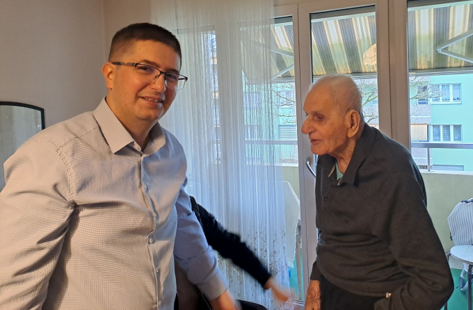 ![]() CIRIH: U ZIJARET KOD STAROG MUEZINA MUMINA BOTONJIĆA (96) Glavni imam bošnjačkog džemata u švicarskom gradu Cirihu, Sanel ef. Hodžić je u četrtak 11.12.2025 posjetio najstarijeg džematliju i bivšeg mujezina Mumina Botonjića. Mumin je rođen 1929. Iako ima vec 96 godina, dobrog je zdravlja i kreće se samostalno po stanu u kojem živi sam. Njegova kćerka živi u blizini i obilazi ga nekoliko puta na dan. Mumimov životni put je obilježen i ratnim strahotama. U toku Drugog svjetskog rata kao šesnaestogodišnjak je ranjen u nogu od strane četničkih zločinaca. Četnici su u Botonjićima kod Sanice tokom Drugog svjetskog rata počinili masovne pokolje nad Bošnjacima nakon što su ustaše preobučeni u bošnjačku nošnju izvršile masaker nad srpskim stanovništvom. U agresiji na Bosnu i Hercegovinu 1992-1995. Mumin i njegova familija su doživjeli strahote. Njegov sin je odveden u zloglasni logor Manjača, nakon soam mjeseci zlostavljanja oslobođen je. Mumimnova supruga je pod sumnjivim okolnostima preminula u bolnici, a njegovog brata i snahu su srpski zločinci ubili spaljivanjem. Tokom agresije na BiH Mumin je preživio strahovite torture od strane srpskih nacionalista ali je uspio da se 1995. prebaci u Njemačku a odatle u Švicarsku gdje živi više od 30. godina. Bosansku domovinu je pronašao u bošnjačkom džematu Cirih gdje je redovno dolazio i družio se s džematlijama. Ova posjeta mu je značila puno i bilo mu je drago upoznati novog imama Sanel ef. koji došao u pratnji, potpresjednika odbora Samira Hodžića i člana nadzornog odbora Senada Ušanovića. Mumin je zamolio da mu se donese vaktija / kalendar za 2026. godinu kako bi na vrijeme klanjao namaze.