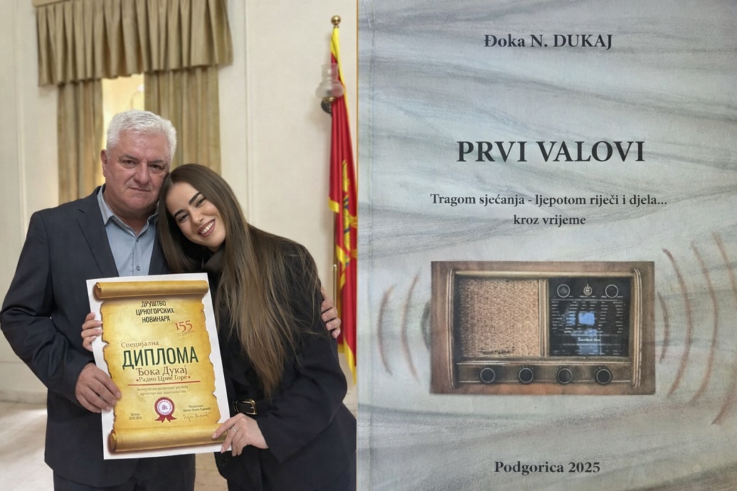 ![]() Đoka Dukaj u redakciji na albanskom jeziku priprema prilog BESA U ETRU NOVINARSKI PUT ĐOKE DUKAJA Uvijek je kroz istoriju i vremena riječ vezivala ljude, ma kakva god bila vremena. Ta riječ, snažna i moćna, čula se 23. januara 2025. godine u Nacionalnoj biblioteci „Đurđe Crnojević“. Baš pod svodovima ove institucije, koja čuva brojna lijepa izdanja knjiga, publikacija, ali i novina i novinarske riječi, obilježen je Dan novinara Crne Gore i 155 godina crnogorskog novinarstva. Dodijeljene su plakete, diplome i zahvalnice onima koji čine riječ i žive za tu riječ. A riječ, kao riječ, uvijek ima svoju snagu. Među onima čije se ime s razlogom izgovara sa poštovanjem našao se i Đoka Dukaj (albanski: Gjokë Dukaj), čovjek koji je godinama dokazivao da se novinarstvo mjeri onim najvrijednjim istinom i obrazom. Dobivši priznanje Društva crnogorskih novinara diplomu za poseban doprinos razvoju crnogorskog novinarstva. Ta diploma ima posebnu snagu, jer dolazi u godinama kada se sabira ono što je ostalo i ostaje iza čovjeka, a iza Đoke je ostalo mnogo trag, mjera i obraz. Takva priznanja su snažna potvrda da je neko svoj vijek proveo uz riječ i da je tu riječ sačuvao čistom. A Đoka Dukaj je upravo takavnovinar koji je svojim radom spajao ljude, jezike i prostore Crne Gore, ostavljajući iza sebe priče koje ne zastarijevaju. Zato ovaj tekst sa punim pravom posvećujem ovom izuzetnom čovjeku i novinaru, a ja uvijek s ponosom ističem mom albanskom bratu, ne bez razloga. Riječ je o doajenu redakcije na albanskom jeziku Radija Crne Gore, Đoki Dukaju, čovjeku čije ime u novinarskom traje kao dobra riječ među ljudima. I to ne bilo kakva riječ već ona koja obavezuje, zrači i plijeni svojom dobrotom. Đoka je potekao iz Malesije, iz kraja đe su se riječ i data besa poštovali vjekovima. Zato je Đokin novinarski put bio put bese riječ da bude čista, istina provjerena, a čovjek sačuvan da se ne slomi ni u priči ni zbog priče. Kod njega je besa bila i ostala zakon profesije. I upravo su takvi ljudi, skromni i nenametljivi, pokazali da se profesionalizam ne dokazuje velikim riječima, već djelima, upornošću i čistim obrazom. Kod njega se riječ nije rasipala istina je vazda imala prvo mjesto. I ono što je možda najljepše kroz njegov rad nije se gradila samo priča, nego i povjerenje. Ne samo među kolegama, već i među narodima Crne Gore. Jer ljudi poput njega ne pričaju o multikulturalnosti kao o programu oni je žive, svakog dana, u normalnosti, u poštovanju, u toplini koja spaja. Njegov primjer pokazuje da Crna Gora najviše liči na sebe onda kada se prepoznamo u različitosti, i kada riječ služi da pomiri, a ne da podijeli.