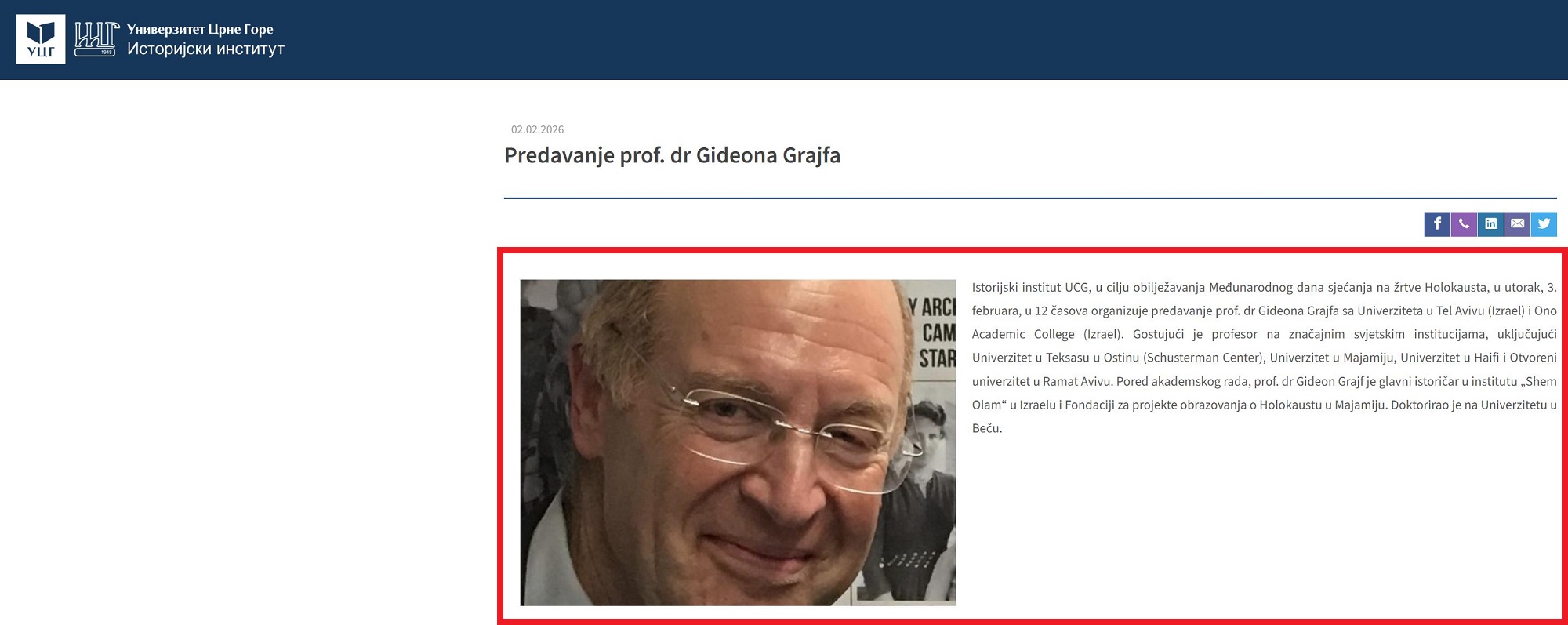 ANTICIVILIZACIJSKI I DEHUMANIZIRAJUĆI JE DOZVOLITI GIDEONU GREIFU GOSTOVATI NA ISTORIJSKOM INSTITUTU UNIVERZITETA CRNE GORE