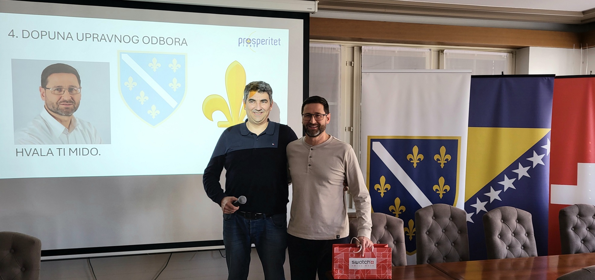 ![]() ODRŽANA JE DESETA REDOVNA SKUPŠTINA NVO “PROSPERITET FOND CH” U subotu, 7.februara 2026. godine u prostorijama IZBA u Oberentfeldenu održana je deseta redovna Skupština NVO “Prosperitet fond CH”. Predsjednik Udruženja g. Senad Džihanović je podnio detaljan izvjeṣ̌taj o ključnim aktivnostima Udruženja, kako onima koje su realizovane u vlastitom aranẓ̌manu, tako i onima koje su realizovane uz pomoć partnerskih udruženja, posebno sa pomozi.ba Ono, ṣ̌to je posebna odlika ovog Udruženja jeste da su postali prepoznati kao pouzdan partner, da su igradili Mrežu povjerenja, ṣ̌to je ekstra vrijednost. A rezultati desetogodiṣ̌njeg djelovanja su zaista za svaku pohvalu. Ṣ̌irok spektar djelovanja, od humanitarnog ka razvojnom polju djelovanja, stipendije, Marṣ̌ sjećanja, online Bosanska ṣ̌kola, registracija birača. Ovogodiṣ̌nja Skupṣ̌tina je protekla u jako pozitivnom ozračju, jednoglasno su prihvaćeni svi izvjeṣ̌taji i usvojeni planovi za iduće aktivnosti, sa akcentom na podrṣ̌ku za animaciju i registraciju birača za ovogodiṣ̌nje izbore u BiH. Posebno emotivan trenutak bio je oproṣ̌taj od dugogodiṣ̌njeg blagajnika Midheta Mide Jakupovića. Mido je jedan od onih dobrih Boṣ̌njana koji bez velike pompe, disciplinovano i odgovorno, bez kolebanja, računice, konstantno i uporno radi za dobrobit svog naroda. Pored aktivnostu u Prosperitet Fond CH, Mido je dugi niz godina bio je blagajnik i aktivista dẓ̌emata Cirih, a trenutno obnaṣ̌a funkciju predsjednika “Boṣ̌njačke nacionalne fondacije za Ṣ̌vicarsku”. Tople riječi zahvale za nesebičan doprinos radu Udruženja, kao i prigodan poklon uručio je predsjednik Dẓ̌ihanović. Slogan ”Mido, hvala ti” kao i njegove riječi zahvale i korisni savjeti su ono ṣ̌to je definitivno obilježilo desetu Skupṣ̌tinu Udruženja Prosperitet fond CH. |