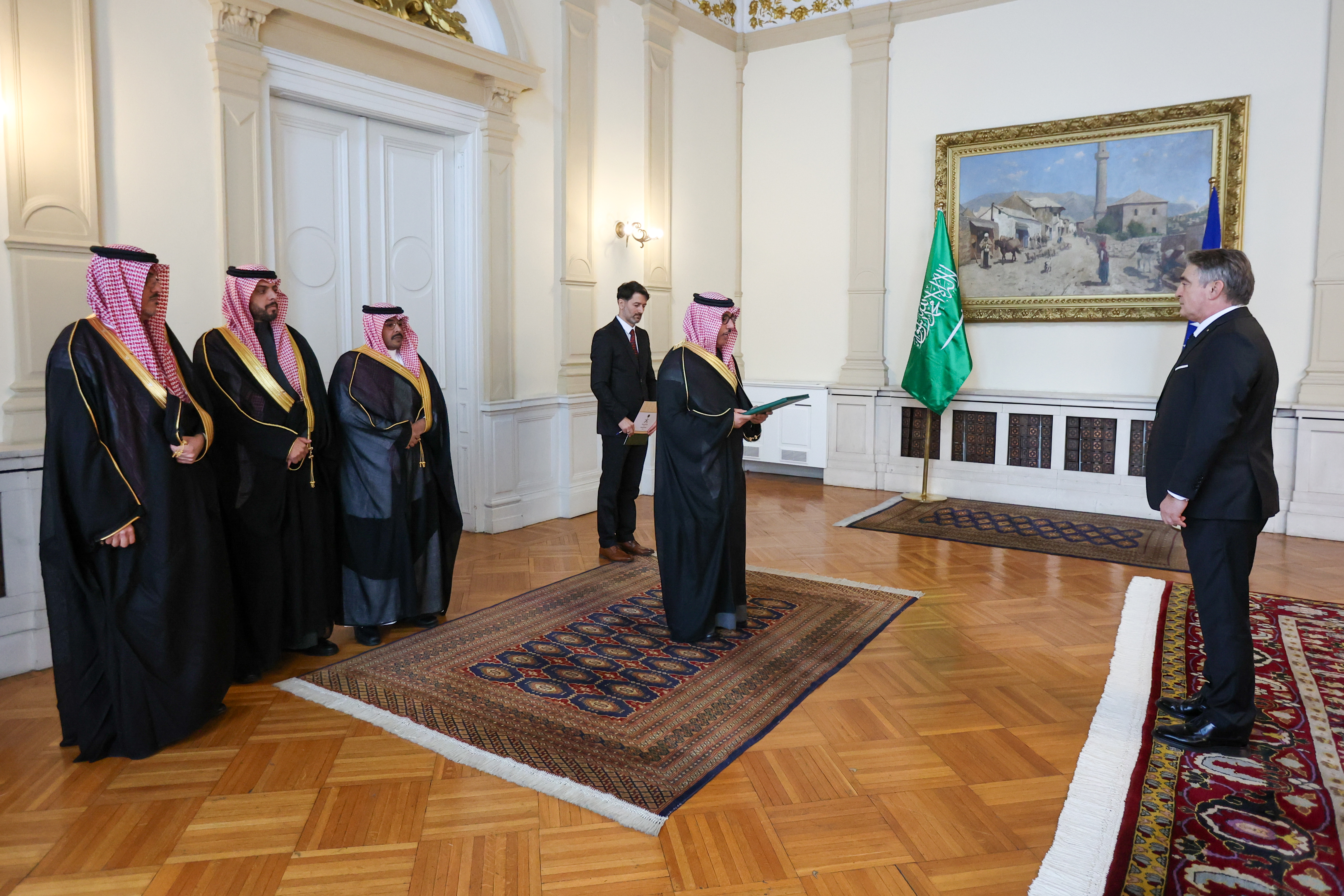 ![]() PREDSJEDAVAJUĆI BIH KOMŠIĆ PRIMIO AKREDITIVNO PISMO NOVOIMENOVANOG AMBASADORA KRALJEVINE SAUDIJSKE ARABIJE AL WASEDYJA Predsjedavajući Predsjedništva BiH Željko Komšić primio akreditivno pismo novoimenovanog ambasadora Kraljevine Saudijske Arabije u Bosni i Hercegovini Anasa Abdulrahmana O. Al Wasedyja Predsjedavajući Predsjedništva BiH Željko Komšić poželio je dobrodošlicu ambasadoru Al Wasedyju i iskazao uvjerenje da će Bosna i Hercegovina i Kraljevina Saudijska Arabija nastaviti razvijati prijateljske odnose, te uspješnu bilateralnu i multilateralnu saradnju. Izrazio je zahvalnost Kraljevini Saudijskoj Arabiji za kontinuiranu pomoć Bosni i Hercegovini kada je ona bila najpotrebnija, kao i podršku razvojnim projektima putem Saudijskog fonda za razvoj. Ocijenjeno je da ekonomski odnosi imaju realan potencijal za razvoj, posebno u oblastima investicija, trgovine, turizma i obrazovanja, uz konstataciju da su direktna strana ulaganja od izuzetne važnosti za privredni rast i ukupni razvoj Bosne i Hercegovine. Sagovornici su iskazali obostrani interes za zaključivanje bilateralnih sporazuma s ciljem stvaranja povoljnijeg pravnog okvira za nastavak konstruktivnog dijaloga i unapređenje sveukupnih odnosa. Na kraju ceremonije, predsjedavajući Predsjedništva BiH Željko Komšić je poželio uspješnu diplomatsku misiju novoimenovanom ambasadoru Kraljevine Saudijske Arabije u Bosni i Hercegovini Anasu Abdulrahmanu O. Al Wasedyju. ![]() |